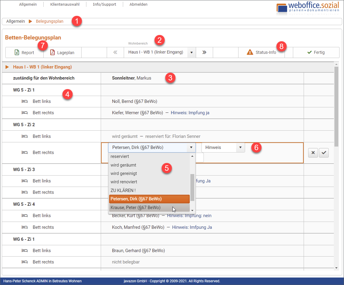 - Optional kann ein für diesen Wohnbereich zuständiger Mitarbeiter festgelegt werden.